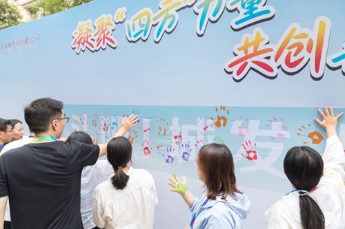最后,集團領(lǐng)導(dǎo)為各隊發(fā)放了紀(jì)念獎牌,大家接過獎牌,在手印墻按下了共同奮斗的印記,榮譽感和成就感溢于言表,“奮斗吧,城發(fā)人”的共識深深印刻在全員心中。