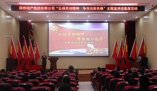 為進(jìn)一步深化市國(guó)資委“黨的創(chuàng)新理論萬(wàn)場(chǎng)宣講進(jìn)基層”活動(dòng),培育和踐行社會(huì)主義核心價(jià)值觀,10月14日下午,鄭州地產(chǎn)集團(tuán)“弘揚(yáng)勞動(dòng)精神 爭(zhēng)當(dāng)出彩先鋒”主題宣講活動(dòng)在西流湖公司中原新區(qū)聯(lián)合黨委基層黨校成功舉辦。集團(tuán)宣講團(tuán)成員、西流湖公司黨支部、鄭地發(fā)展公司員工及中原新區(qū)項(xiàng)目參建單位代表共120余人參加活動(dòng)。