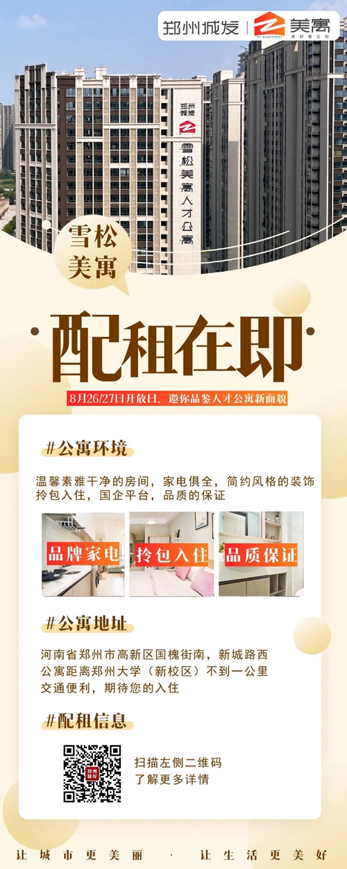 小學(xué)都開(kāi)學(xué)了,各位畢業(yè)大學(xué)生是不是也都找到心儀的工作了?靈魂拷問(wèn)——找到心儀的房子了么?押金難退、房租高貴、環(huán)境嘈雜夜不能寐......好房子不好找?城發(fā)美寓再放大招——雪松美寓新項(xiàng)目開(kāi)業(yè)啦!