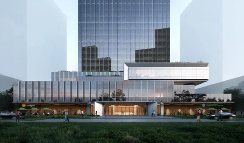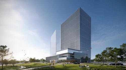 城發(fā)中心由鄭州城市發(fā)展集團全自持運營,地上建筑22層,地下建筑4層,總建面約10萬㎡,預計2025年建成交付。