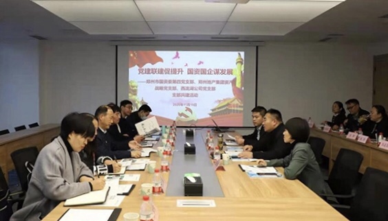 為深入學(xué)習(xí)貫徹黨的十九屆五中全會(huì)精神,進(jìn)一步促進(jìn)國資國企改革發(fā)展,不斷探索黨建與企業(yè)科學(xué)發(fā)展的有機(jī)融合,11月19日下午,鄭州市國資委第四黨支部與鄭州地產(chǎn)集團(tuán)資產(chǎn)戰(zhàn)略黨支部、西流湖公司黨支部聯(lián)合開展支部共建活動(dòng)。鄭州市國資委黨委委員、副主任劉學(xué)銀,副調(diào)研員范桂田,第四黨支部書記、財(cái)務(wù)監(jiān)管處處長范競,產(chǎn)權(quán)管理處處長常艷麗,鄭州地產(chǎn)集團(tuán)資產(chǎn)戰(zhàn)略黨支部書記、資產(chǎn)運(yùn)營部部長王樂琪,西流湖公司黨支部書記、董事長、總經(jīng)理吉獻(xiàn)亮,副總經(jīng)理李金光參加活動(dòng)。