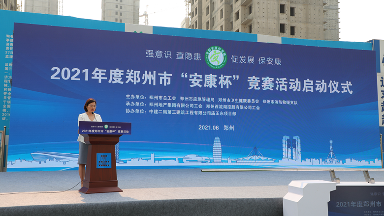 為深入貫徹落實習(xí)近平總書記有關(guān)加強安全生產(chǎn)工作的部署和要求,進一步強化各級各部門、各企業(yè)主體的安全責(zé)任意識,確保我市安全生產(chǎn)形勢持續(xù)好轉(zhuǎn),職工安全健康不斷鞏固。6月11日上午,由鄭州市總工會、鄭州市應(yīng)急管理局、鄭州市衛(wèi)生健康委員會及鄭州市消防救援支隊主辦,鄭州地產(chǎn)集團工會、鄭州西流湖控股有限公司工會承辦的鄭州市2021年“安康杯”競賽啟動儀式在中原新區(qū)廟王東安置區(qū)項目成功舉行。鄭州市相關(guān)組織部門、市總工會成員單位、地產(chǎn)集團、西流湖公司、各參建單位共200余人參加啟動儀式。鄭州市一級巡視員,市總工會黨組書記、主席趙新中、鄭州市衛(wèi)生健康委員會黨組成員、二級調(diào)研員楊德林、鄭州市應(yīng)急管理局三級調(diào)研員安春茂、鄭州市消防救援支隊副支隊長、滅火救援指揮部部長李隆、鄭州市總工會副主席宋少丹、鄭州地產(chǎn)集團有限公司監(jiān)事會主席、工會主席李靜波、鄭州地產(chǎn)集團西流湖公司黨支部書記、董事長、總經(jīng)理 吉獻亮,中建二局第三建筑工程有限公司西北分公司黨委副書記、執(zhí)行總經(jīng)理趙海軍出席儀式。啟動儀式由市總工會勞動和經(jīng)濟部部長宋慧主持。