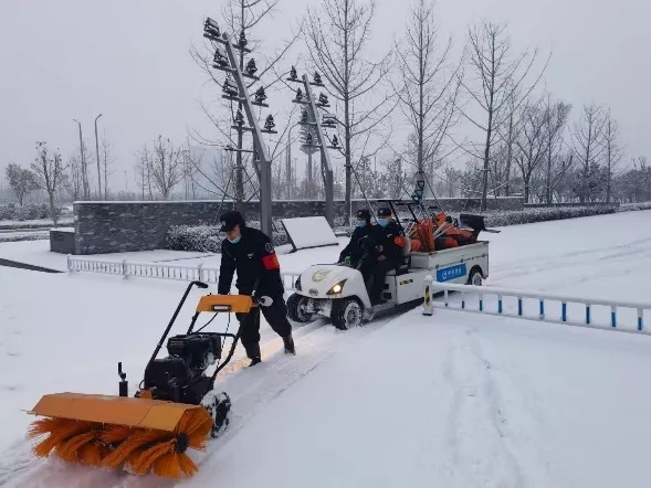2022年1月19日,河南省氣象臺(tái)發(fā)布暴雪藍(lán)色預(yù)警,為應(yīng)對2022年二次來襲的暴雪,鄭州奧林匹克體育中心立即啟動(dòng)應(yīng)急預(yù)案,實(shí)行責(zé)任區(qū)劃分和全員義務(wù)清理相結(jié)合的原則,所有人員“以雪為令,即下即清”,全面出動(dòng)快速打響清雪除冰戰(zhàn)役,圓滿完成了本次鏟冰除雪工作任務(wù)。